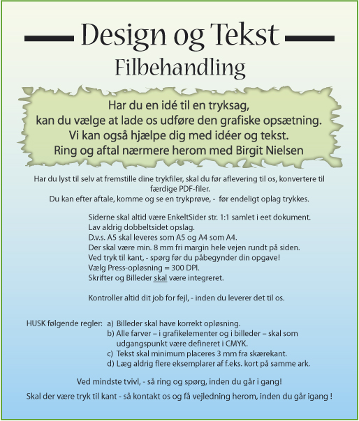 Visitkort - Flyers - Brevpapir - Konvolutter - Hæfter og blade - Festsange